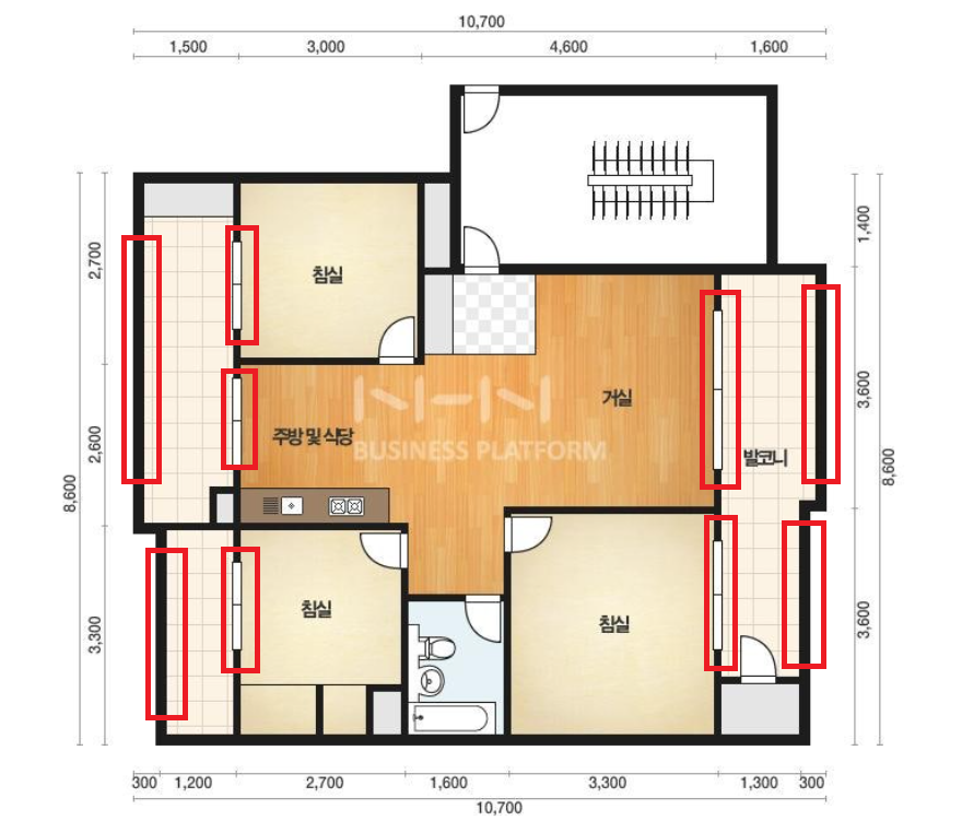 외부쪽으로 베란다 창들이 있기때문에